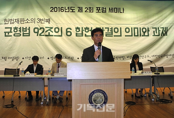 임슬기 법무관(국방부)도 “군형법 92조의 6은 우리나라가 처해있는 안보 현실과 이로 인한 군조직의 특수상황 하에서 발생할 수 있는 추행이라는 범죄유형을 처벌하기 위해 규정된 것”이라면서 “죄형법정주의 명확성 원칙, 과잉금지원칙, 평등권을 침해하는 조항이 아니다”라고 강조했다.