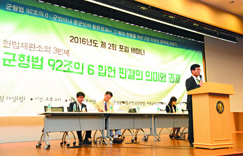 바른군인권연구소와 바른성문화를위한국민연합, 대한민국고엽제전우회는 29일 서울 여의도 국회도서관에서 ‘군형법 92조 6 합헌 판결의 의미와 과제’를 주제로 포럼을 개최하고 군인 간 동성애를 금지하는 군형법을 반드시 지켜야 한다고 강조했다.